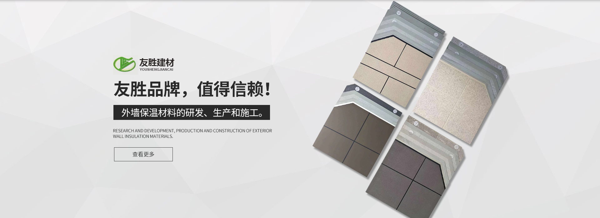 安徽友勝建材科技集團有限公司是一家專業(yè)從事建筑施工與節(jié)能保溫及裝飾裝修生產、施工企業(yè)。企業(yè)于2008年從事外墻保溫材料的研發(fā)。生產和施工。現公司旗下?lián)碛?安徽舒然裝飾 工程有限公司)裝飾裝修貳級資質、防水防腐及保溫貳級資質。旗下系列產品有:巖棉板、巖棉復合板、石墨聚苯板、珍珠巖板、勻質板、地坪保溫隔聲板,粘結、抹面及無機輕型材料等。